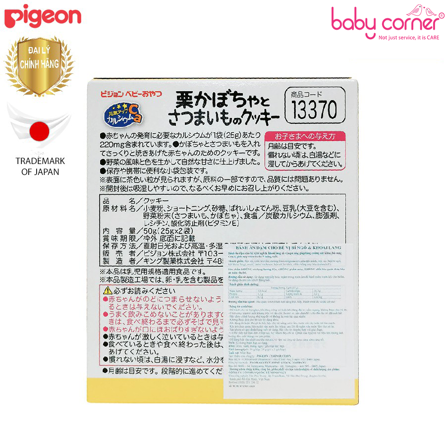 | Tên sản phẩm | Bánh Ăn Dặm Bổ Sung Canxi Pigeon Vị Bí Ngô & Khoai Lang |
