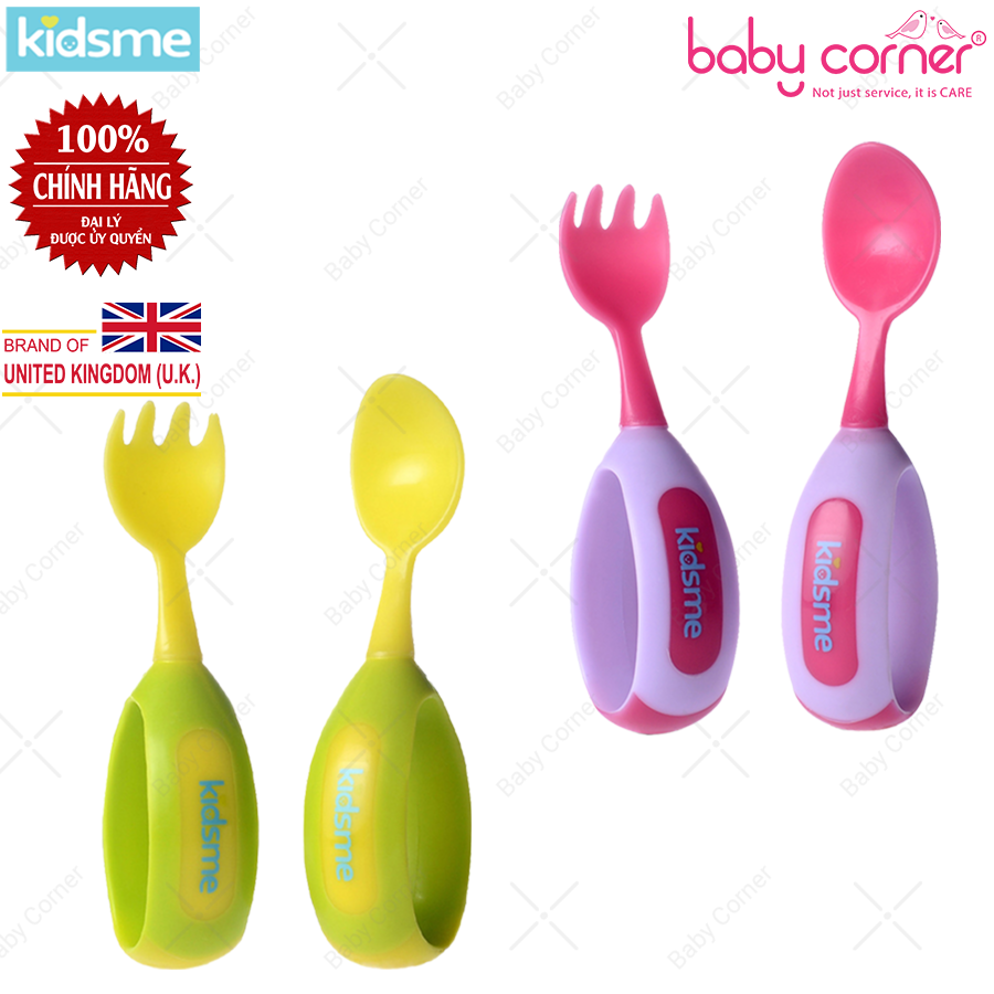 - Bộ nĩa và muỗn tập ăn Kidsme là sản phẩm không thể thiếu cho bước đầu tự ăn bằng muỗng của bé.