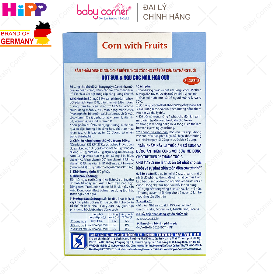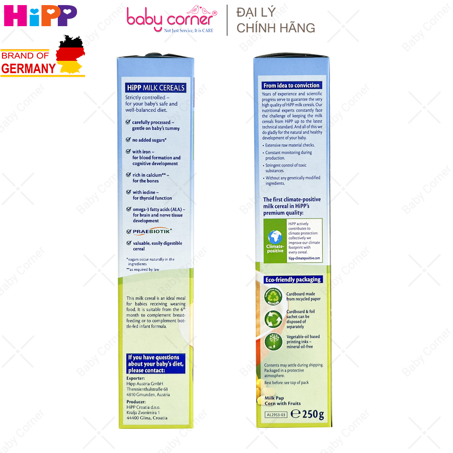 | Tên sản phẩm | Bột Ăn Dặm HiPP Vị Bắp Sữa và Hoa Quả |