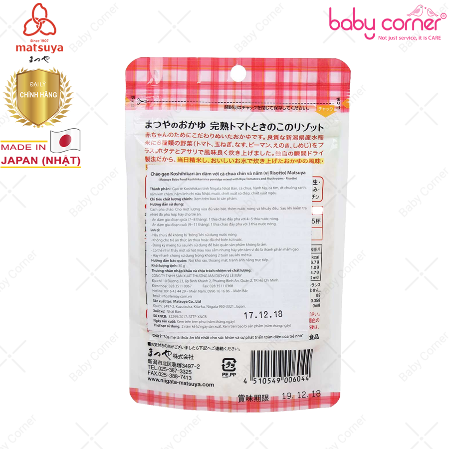 Cháo Ăn Dặm Matsuya Cà Chua Chín & Nấm (vị Risotto)