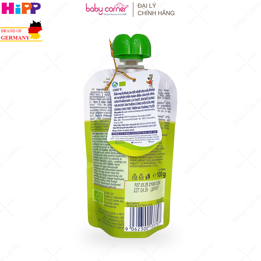 | Tên sản phẩm | Dinh Dưỡng Trái Cây Nghiền Hữu Cơ HiPPiS Organic (Kiwi, Lê, Chuối) |