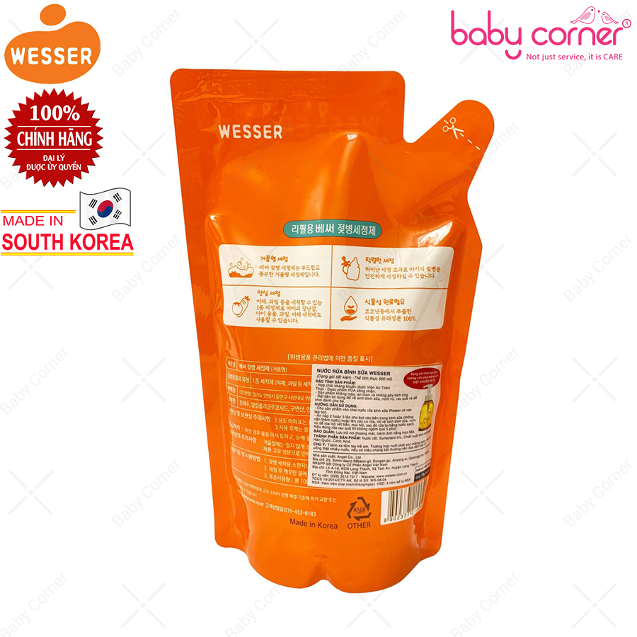 Nước Rửa Bình Sữa và Dụng Cụ Wesser, Túi 500ml