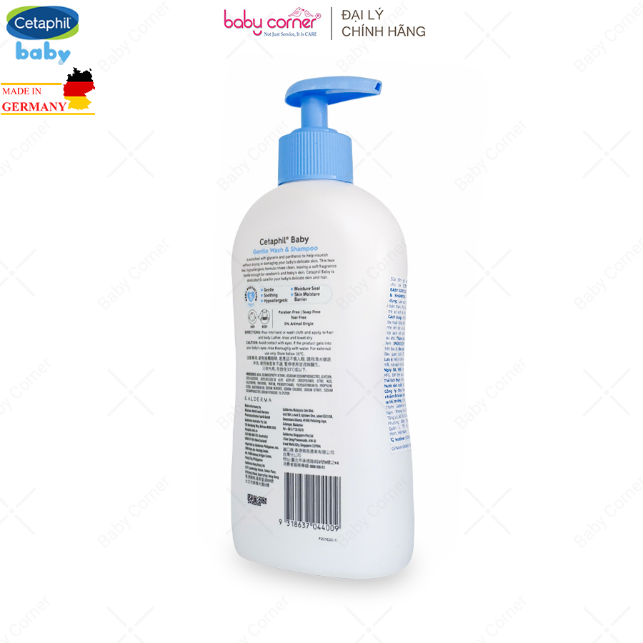 + Sữa tắm gội Cetaphil Baby Gentle Wash & Shampoo với công thức dịu lành, độ pH trung tính giúp làm sạch làn da nhạy cảm của bé hàng ngày mà không gây khô da.